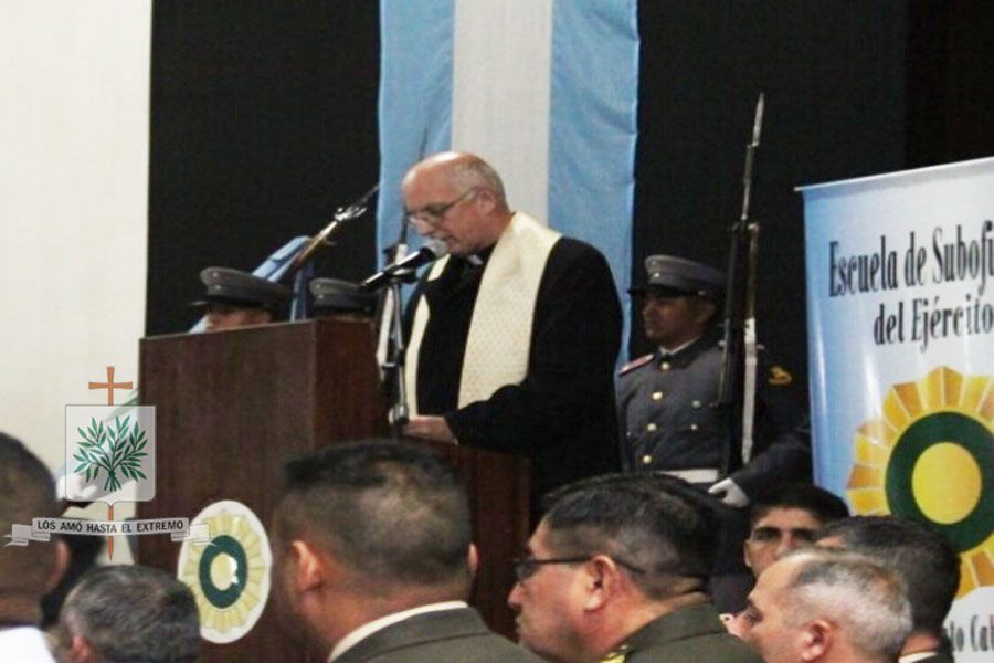 Buenos Aires | Te pedimos, Padre, por estos hijos tuyos que en ti han puesto su esperanza, para que renueves con tu bendición en todos ellos, la noble vocación de soldados, la frase pertenece a un fragmento de la invocación religiosa brindada por el Obispo Castrense de Argentina, Mons. Santiago Olivera ayer en la ESESC. Fue en la jornada del 12 de julio en la ceremonia desarrollada en la  Escuela de Suboficiales del Ejército Sargento Cabral (ESESC) donde egresaron 165 Cabos en comisión y Art. 11, de las Armas de Caballería, Artillería e Ingenieros, de las especialidades y servicios de camareros, cocineros, sastres, talabarteros, oficinistas, carpinteros, enfermeros veterinarios y conductores motoristas.