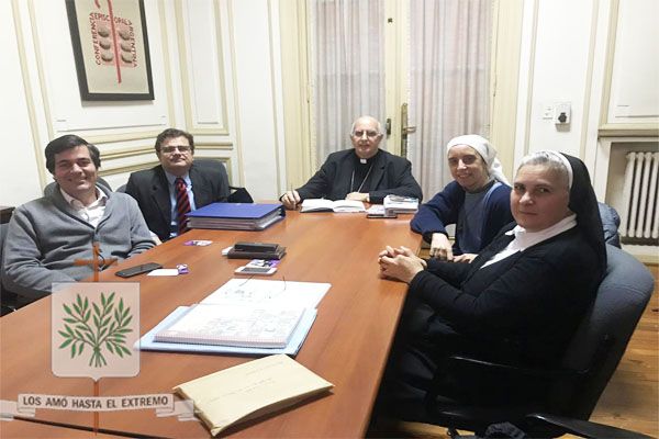 CABA | Mons. Olivera se reunió con los colaboradores de la Delegación para la Causa de los Santos, motivaba la misma, poder trabajar en la preparación del próximo encuentro a desarrollarse en el mes de septiembre en la Ciudad Autónoma de Buenos Aires (CABA). El Obispo Castrense de Argentina, Mons. Santiago Olivera, quien es Delegado Episcopal para la Causa de los Santos de la Conferencia Episcopal Argentina (CEA), se reunió con la Hna. Isabel Fernández, la Hna. Cecilia Imbrogno, Juan Reinoso y el Dr. Carlos González.