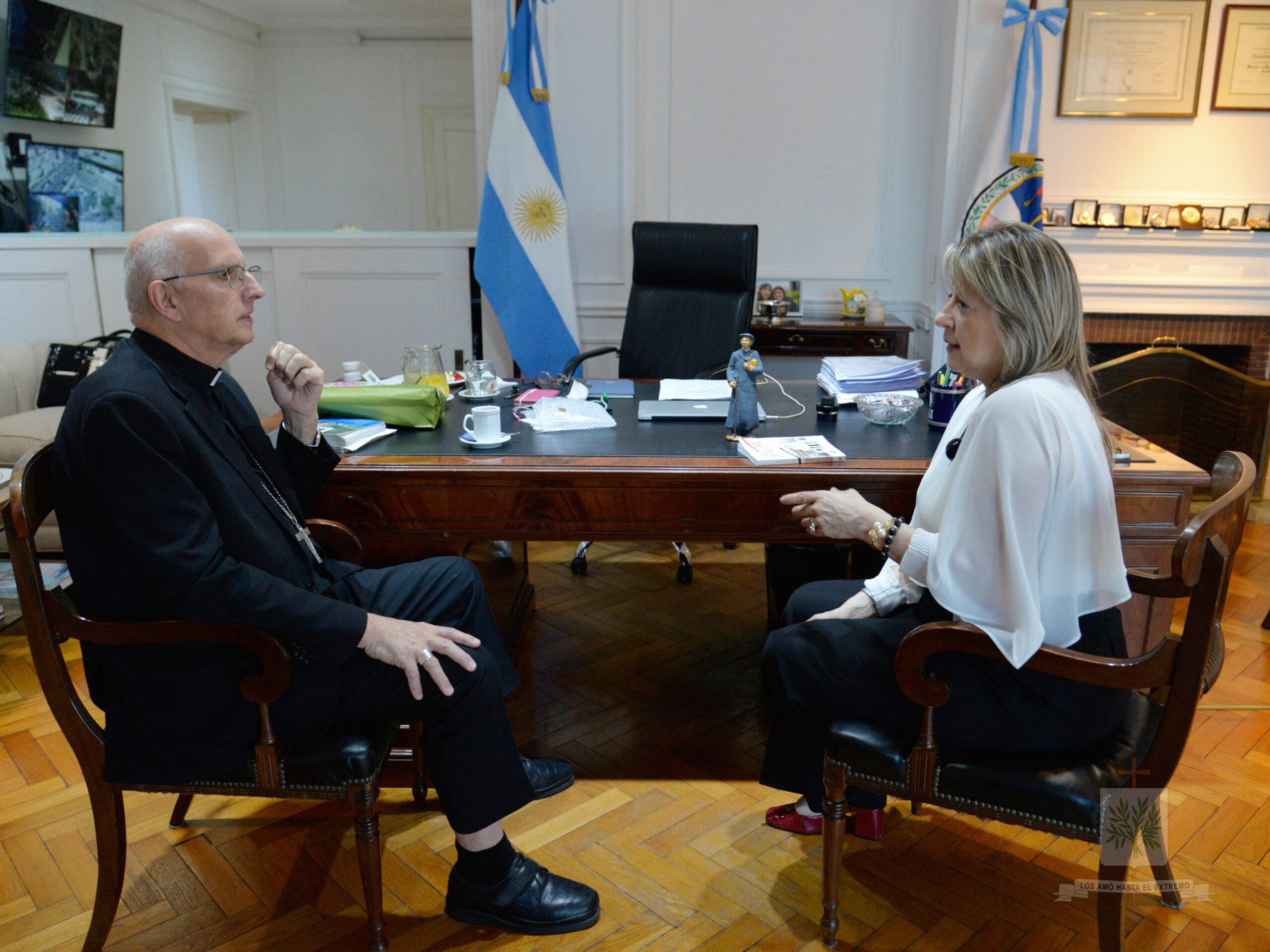 CABA | Mons. Olivera visitó a la nueva Ministro de Seguridad Nacional, en la mañana del jueves 11 de diciembre, el Obispo Castrense y de las Fuerzas Federales de Seguridad arribaba a la sede del ministerio en la Ciudad Autónoma de Buenos Aires (CABA). Mons. Santiago Olivera era recibido por la Sra. Ministro, Mag. Alejandra Monteoliva en su despacho personal donde mantuvieron una charla amena.