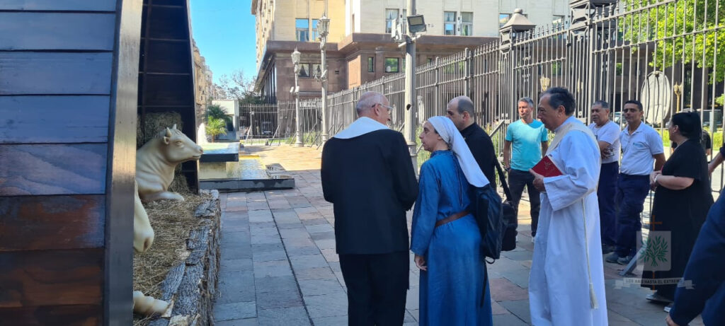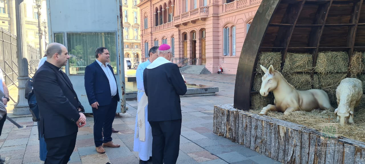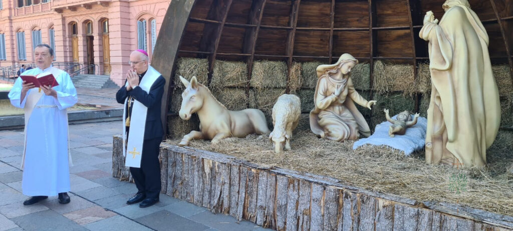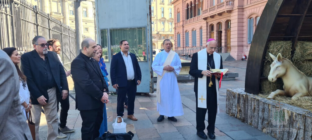 Completando, Mons. Santiago invitó a rezar a la Virgen de Guadalupe por nuestra Patria y también por el nuevo Ministro de Defensa, el Teniente General, Carlos Presti, quien, en esta jornada, en Casa Rosada, en el Salón Blanco, en la ceremonia presidida por el Presidente de la República Argentina iniciará su servicio en el ministerio. Luego de la celebración, el Obispo junto a los presentes en la Santa Misa, se dirigieron desde la Capilla Cristo Rey hasta el ingreso de la sede del Poder Ejecutivo Nacional, hasta el Belén ubicado en el ingreso de la calle Balcarse.