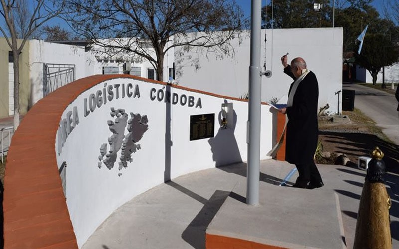 Córdoba | Mons. Olivera bendijo el nuevo monumento a los caídos en la gesta de Malvinas, fue en el Área Logística Córdoba, al cumplirse el 22° aniversario de la creación de la unidad el último 19 de julio de 2017. Participaron de dicha ceremonia el jefe del Área, comodoro Carlos Filgueira junto al Obispo Castrense de nuestro país, Mons. Santiago Olivera, y a ex combatientes de Malvinas.