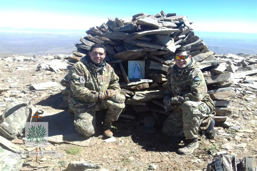 Jujuy | Efectivos del Ejército Argentino peregrinaron acariciando el cielo hasta la cima del Cerro Negro con Ntra. Sra. de Guadalupe, fue luego de haber participado de la Santa Misa de Pascua de Resurrección, en la Iglesia de La Quiaca, ciudad limítrofe de nuestro norte argentino. Mientras el cielo diáfano como ninguno en aquella porción del territorio nacional se pintaba en azul profundo, cual mar del aire, los soldados avanzaron a paso firme hacia la cúspide del cerro.