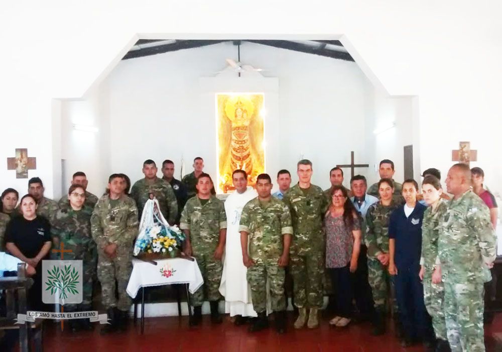 La Rioja | Efectivos de la FAA asistieron a la Santa Misa en Honor a su Santa Patrona, reunidos en la Capilla de la Base Aérea Chamical, rezaron y agradecieron a Ntra. Sra. de Loreto. Ofició la Santa Misa, el Capellán de Base Aérea Chamical, Padre Hugo Agüero, quien recordaba la fecha y elevó la oración pidiendo por la bendición de nuestros efectivos de la Fuera Aérea Argentina (FAA).