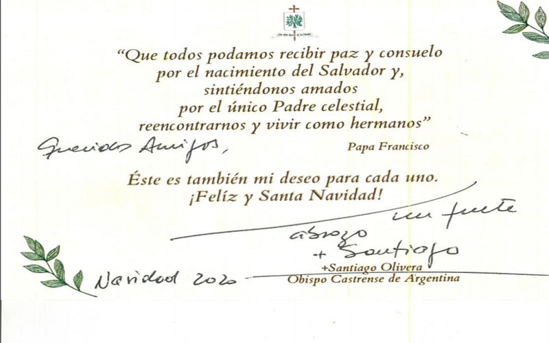 Un fuerte abrazo, +Mons. Santiago Olivera, Obispo Castrense de Argentina