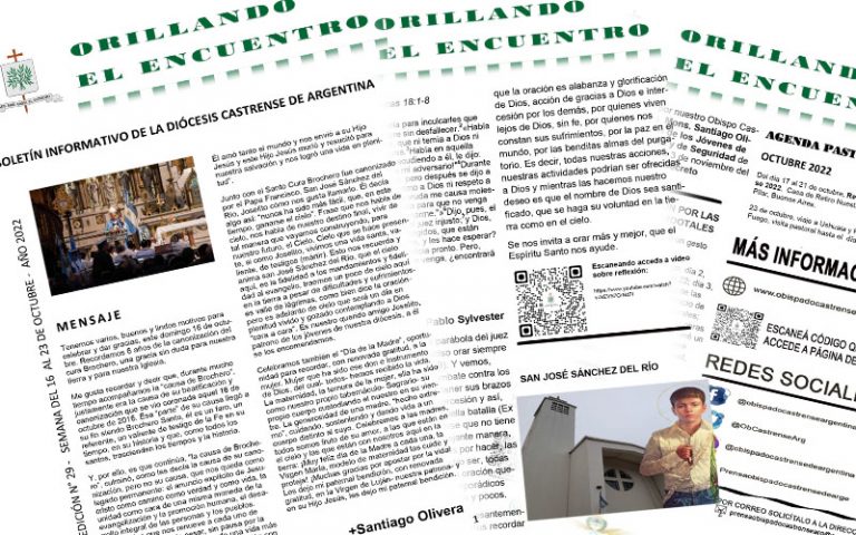 Orillando el Encuentro, el boletín semanal de la Diócesis Castrense de Argentina, fundado hace poco más de 7 meses por nuestro Obispo, Mons. Santiago Olivera, surgió como una nueva herramienta de comunicación en formato de archivo digital (PDF). El boletín semanal, es desarrollado gracias a un equipo de trabajo coordinado por el Vicerrector del Seminario … Sigue leyendo Orillando el Encuentro, el boletín semanal de la Diócesis Castrense de Argentina