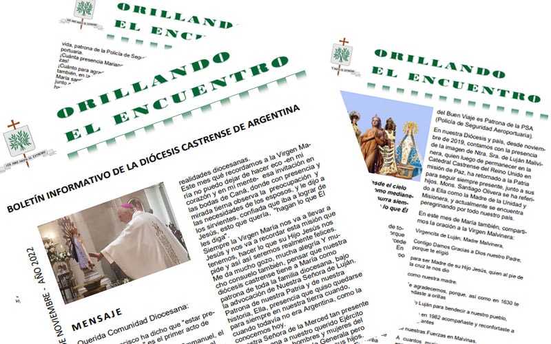 Orillando el Encuentro N° 32, ya se encuentra disponible el boletín informativo de la Diócesis Castrense de Argentina. En la nueva edición, encontrarán el mensaje de nuestro Obispo, Mons. Santiago Olivera, quien nos habla sobre la Santísima Virgen, señalando, “siempre la Virgen María nos va a llevar a Jesús y nos va a recordar esta misión que tenemos, hacer lo que su Hijo Jesús nos pide y así así seremos realmente felices”.