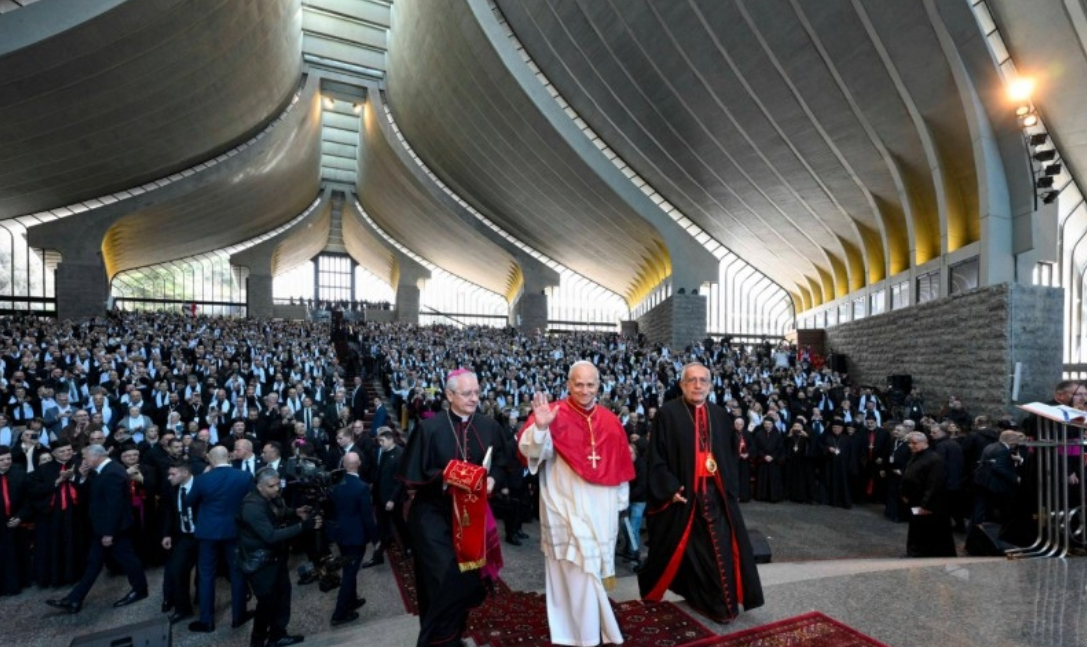 En las palabras del Patriarca, a quien agradezco de corazón, podemos captar la raíz de esta tenacidad, simbolizada por la gruta silenciosa en la que san Chárbel rezaba ante la imagen de la Madre de Dios, y por la presencia de este Santuario de Harissa, signo de unidad para todo el pueblo libanés. Permaneciendo con María junto a la cruz de Jesús (cf. Jn 19,25), nuestra oración —puente invisible que une los corazones— nos da la fuerza para seguir esperando y trabajando, incluso cuando a nuestro alrededor retumba el ruido de las armas y las exigencias propias de la vida cotidiana se convierten en un desafío.