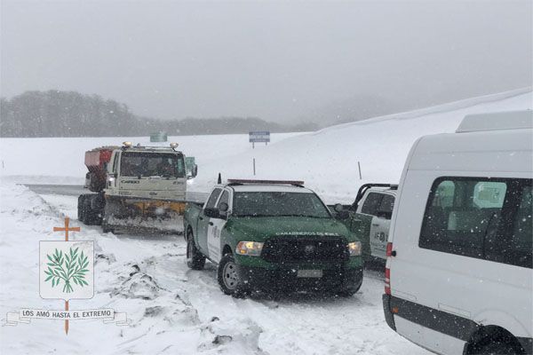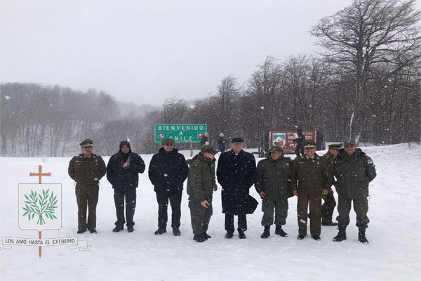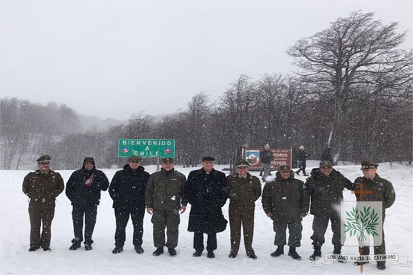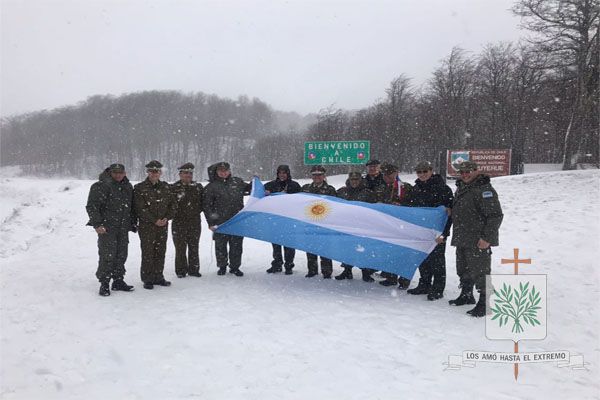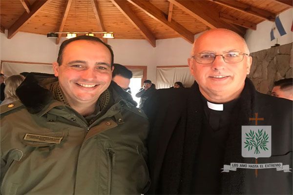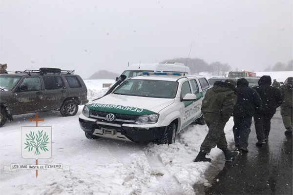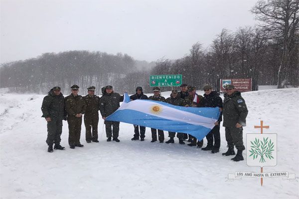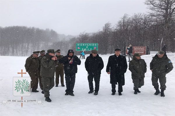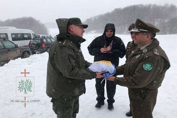En el final de la ruta que nos llevaba al paso internacional, fuimos descubriendo esa geografía magnifica de nuestro país, llegando a los 1.321 metros sobre el nivel del mar, donde luego de la Santa Misa, se volvió a producir lo que desde hace 40 años se realiza. Hablamos del encuentro entre nuestros hermanos chilenos, allí, fuimos testigos como nuestro Obispo Diocesano Castrense Argentino, junto a efectivos de GNA ante una copiosa nevada que lo teñía todo de blanco, celebraron el abrigo del encuentro de fraternidad.