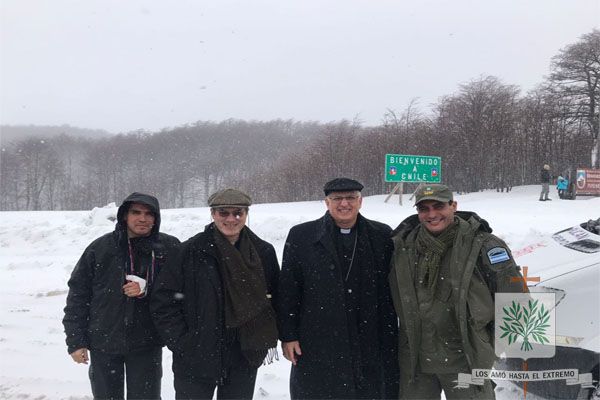 Neuquén | Mons. Olivera “la Paz se logra con el diálogo”, es apenas una frase de tantas que surgieron en el dialogo con nuestro Obispo Castrense de Argentina, a media que los kilómetros se acercaban al Paso Internacional, Cardenal Samoré, el cielo se teñía de grises, mientras la ruta nos acercaba en su trayecto, entre las laderas tapizadas del bosque de la región rumbo a Los Andes. La nieve, como bendición del cielo dibujaba esa bandera de Paz que evoca, que nos convoca a honrar la valiente estrategia de San Juan Pablo II, que no dudo en luchar hasta el extremo para frenar la guerra que se veía inminente entre las dos naciones.