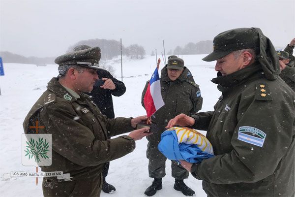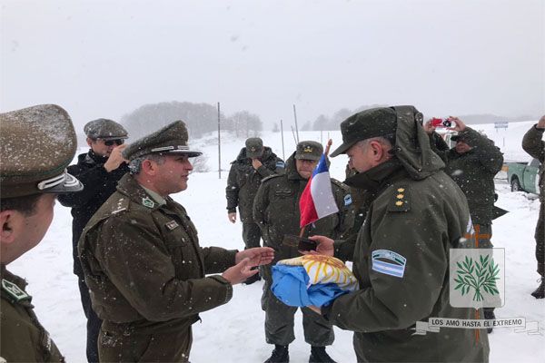 Gesto que se plasmo en las imágenes donde el Comandante de la Gendarmería Nacional Argentina y el Comandante de los Carabineros Chileno, se reunieron en la frontera, donde intercambiaron banderas nacionales. Con Dios como testigo, allí arriba en Los Andes, la historia se escribió y colmó de patriotismo, el compromiso de fraternidad se volvía a sellar, donde manifestaron públicamente que se sienten bien hermanos.-